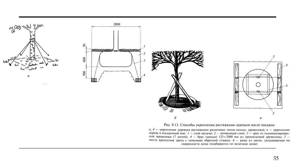 • оправка и укрепление посаженных растений с помощью специальных растяжек с