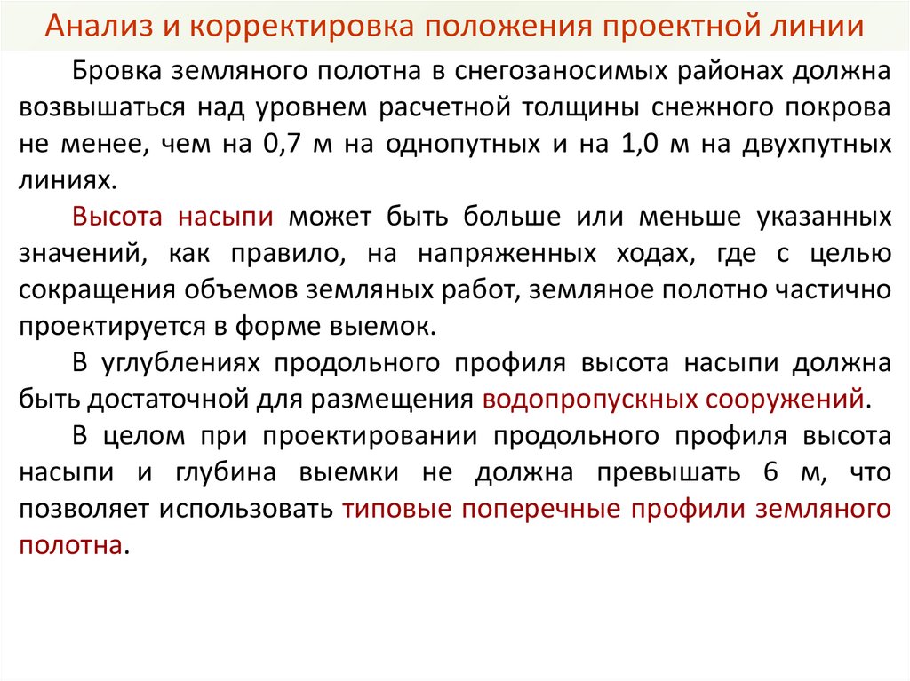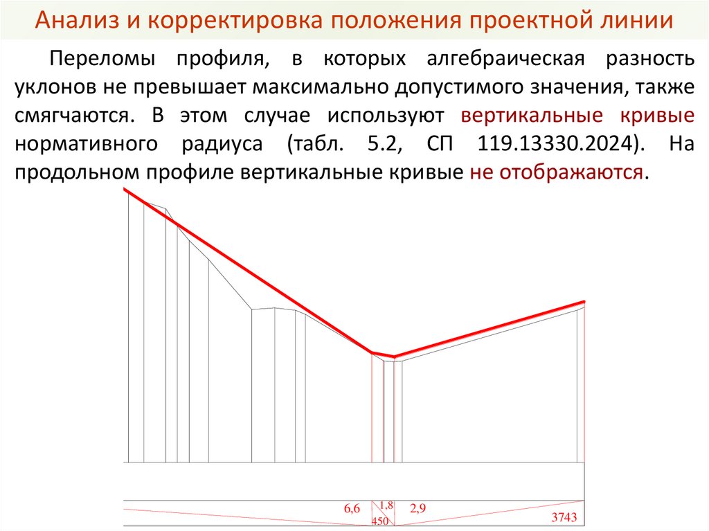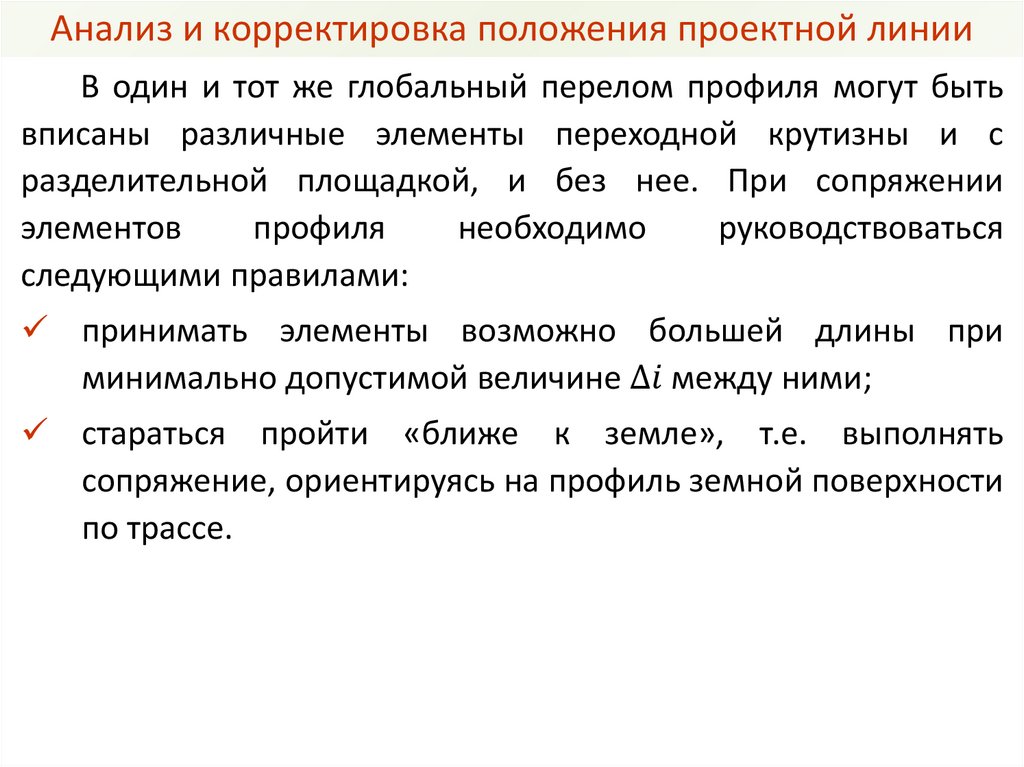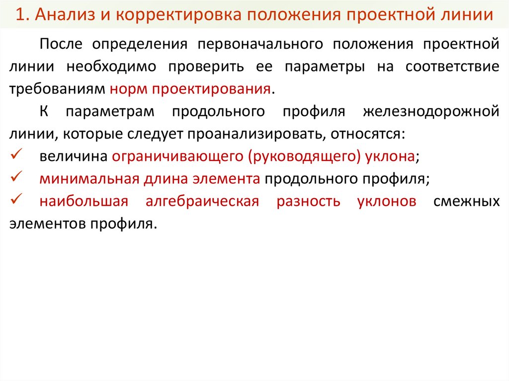 1. Анализ и корректировка положения проектной линииПосле определения первоначального положения проектной