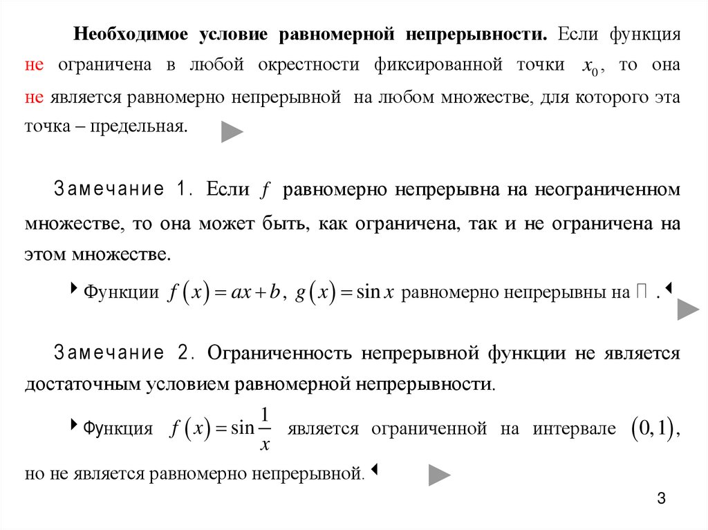 Следствие. Если функция разрывна на множестве X , то она не является равномерно непрерыв-