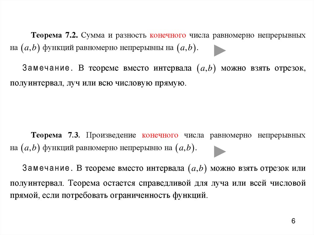 Теорема 7.3. Произведение конечного числа равномерно непрерывных