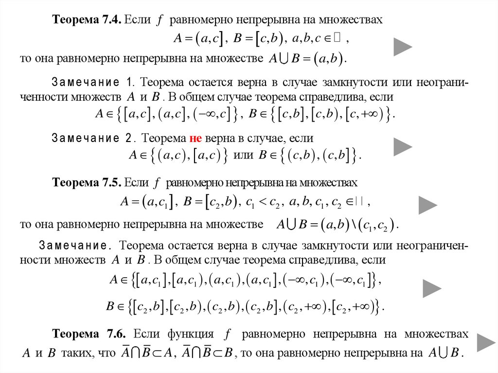 Теорема 7.6. Если функция f равномерно непрерывна на множествах