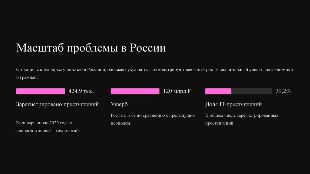 Масштаб проблемы в РоссииСитуация с киберпреступностью в России продолжает ухудшаться, демонстрируя тревожный рост и значительный ущерб для экономики