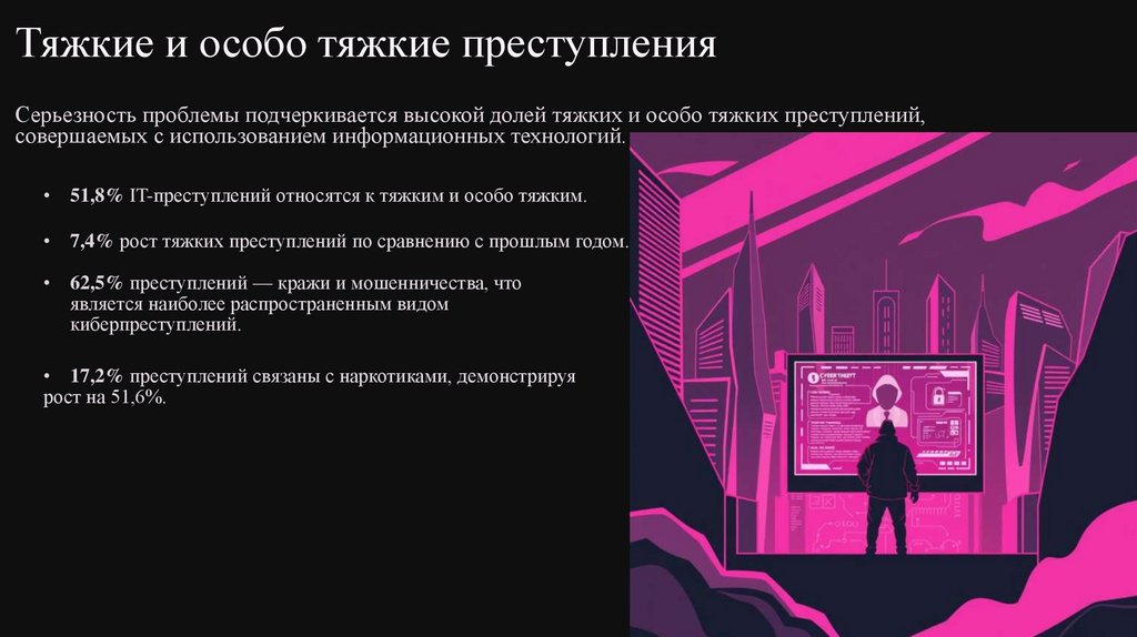• 51,8% IT-преступлений относятся к тяжким и особо тяжким.
