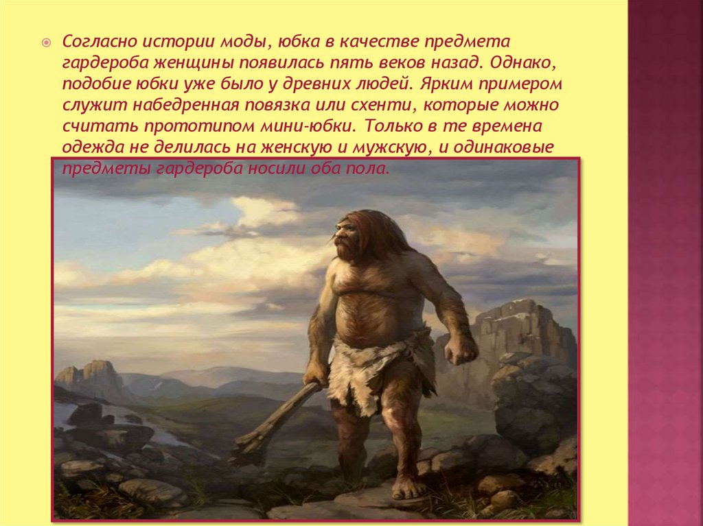 подобие юбки уже было у древних людей. Ярким примером
