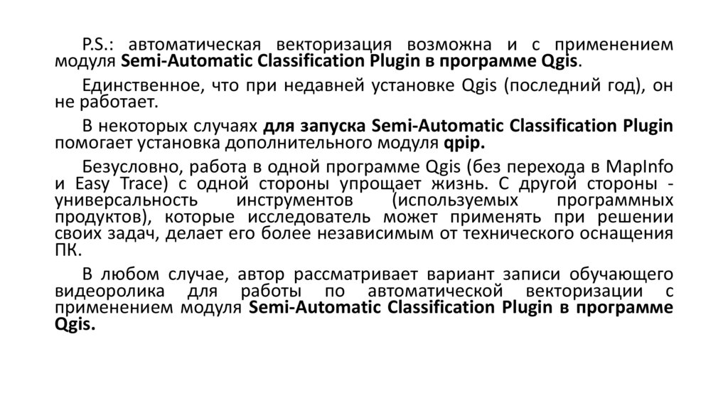 P.S.: автоматическая векторизация возможна и с применениеммодуля Semi-Automatic Classification Plugin в программе Qgis.