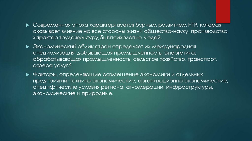 Факторы, определяющие размещение экономики и отдельных