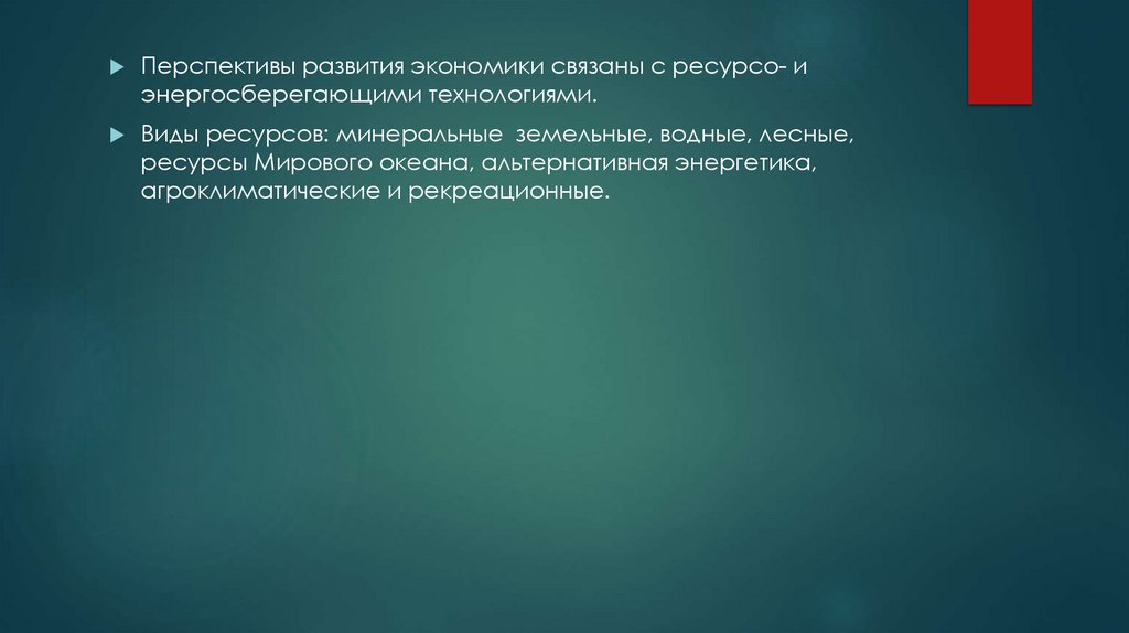 Перспективы развития экономики связаны с ресурсо- иэнергосберегающими технологиями.
