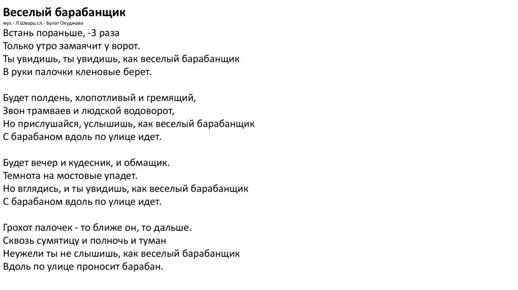 Веселый барабанщикмуз.- Л.Шварц сл.- Булат Окуджава