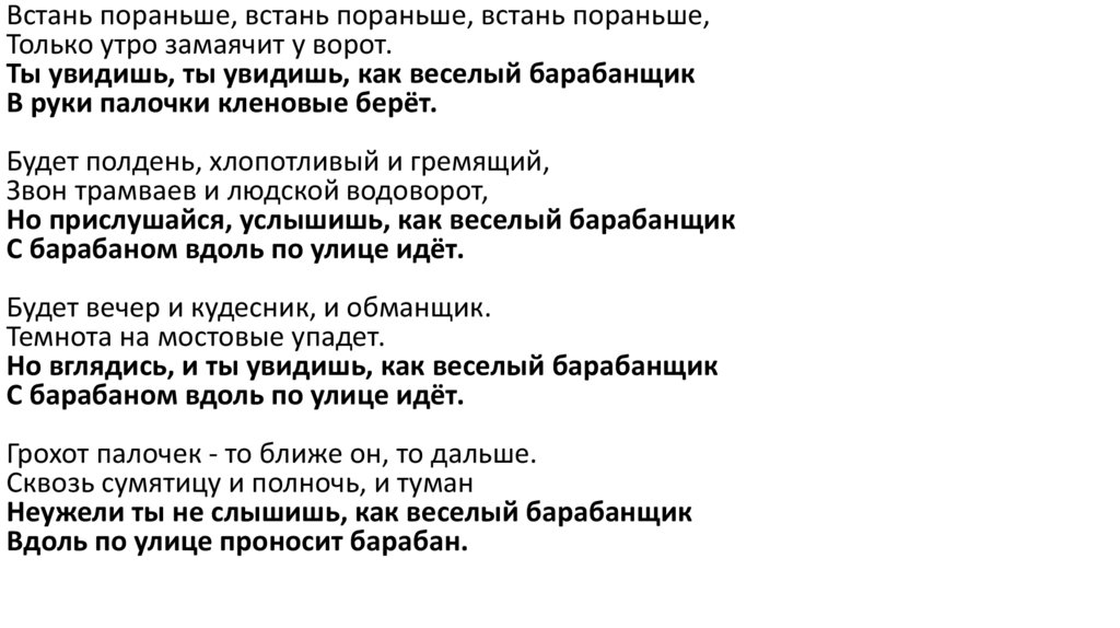 Неужели ты не слышишь, как веселый барабанщик