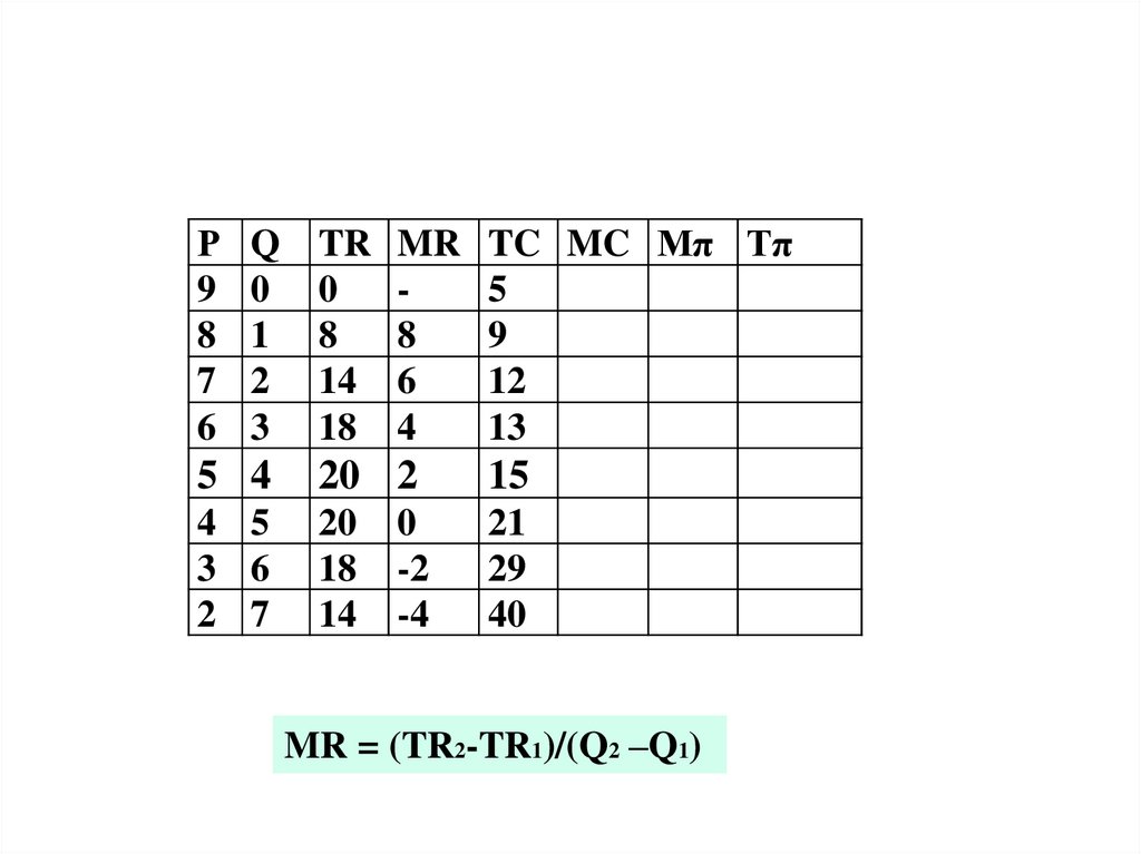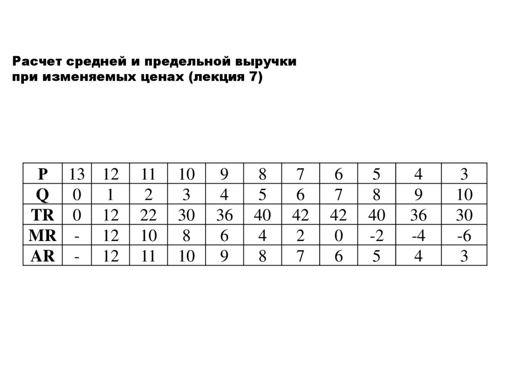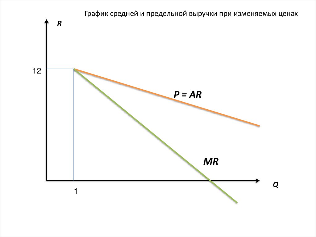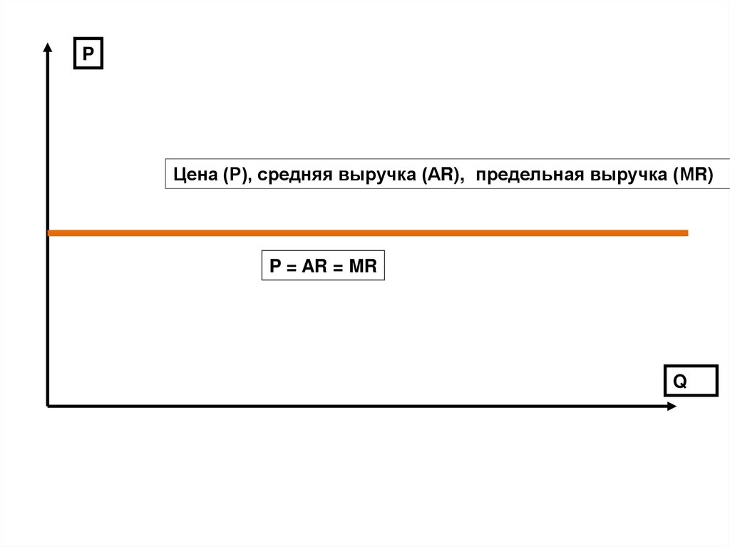 PЦена (Р), средняя выручка (АR), предельная выручка (МR)