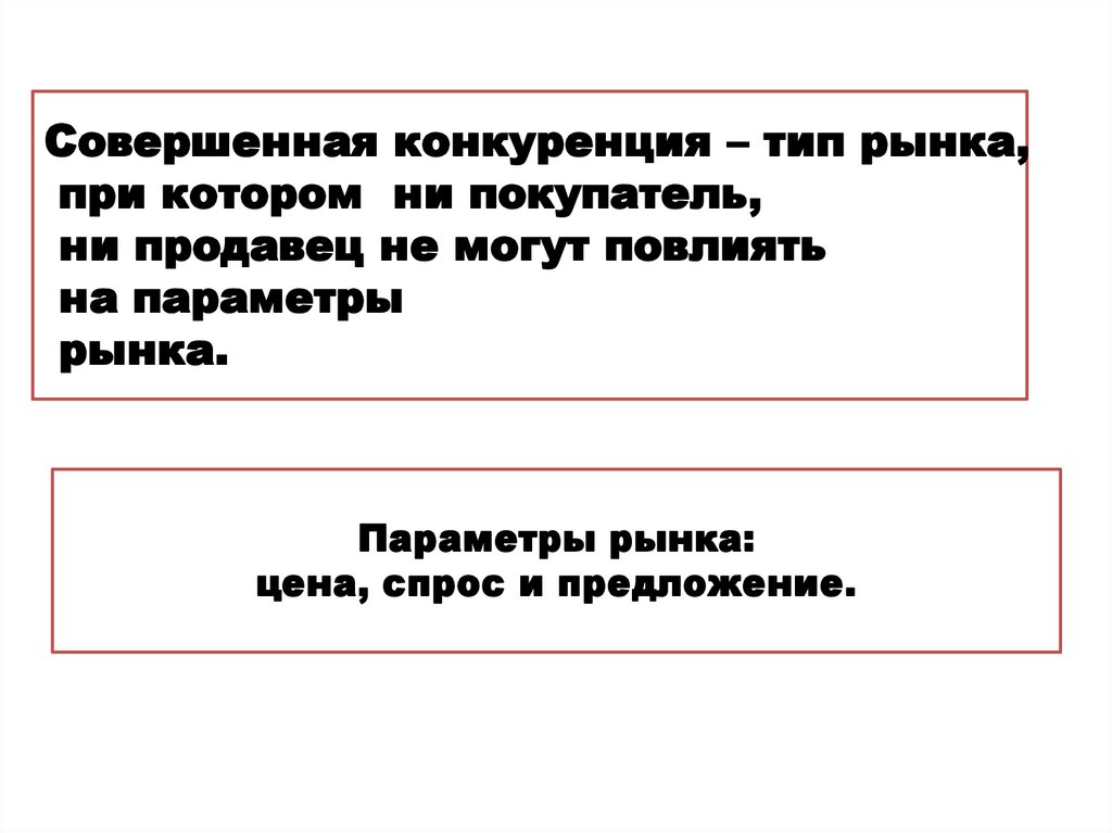 Совершенная конкуренция – тип рынка,при котором ни покупатель,