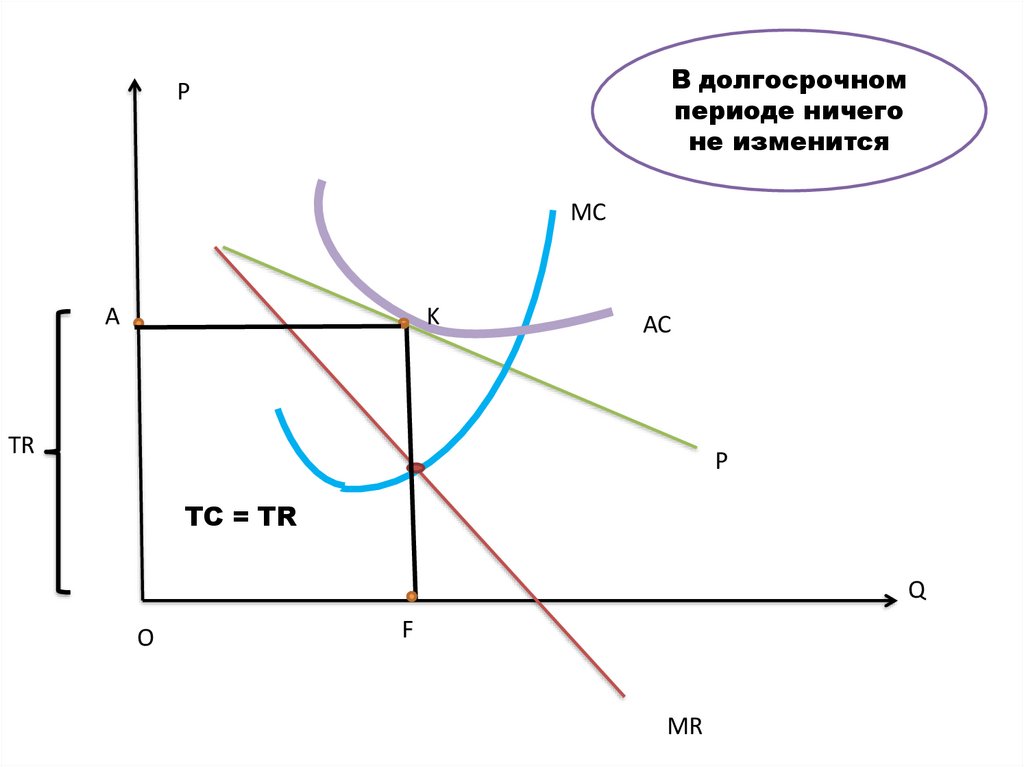 оптимума. Это MC = MR. Однако в долгосрочном периоде ситуация не