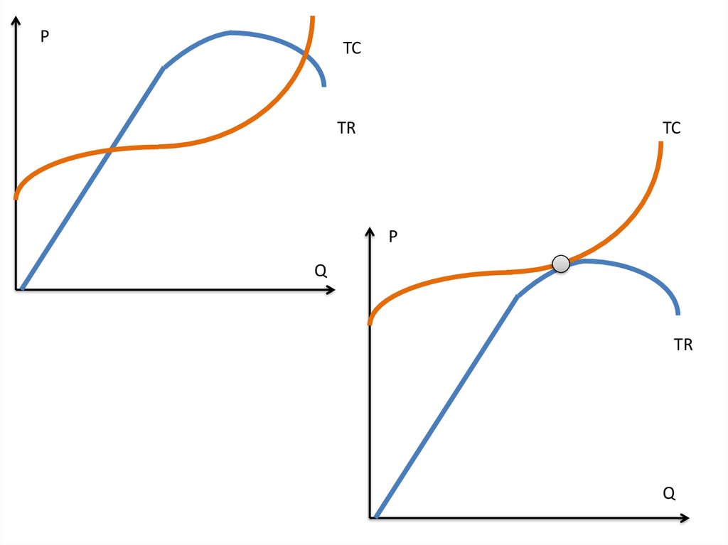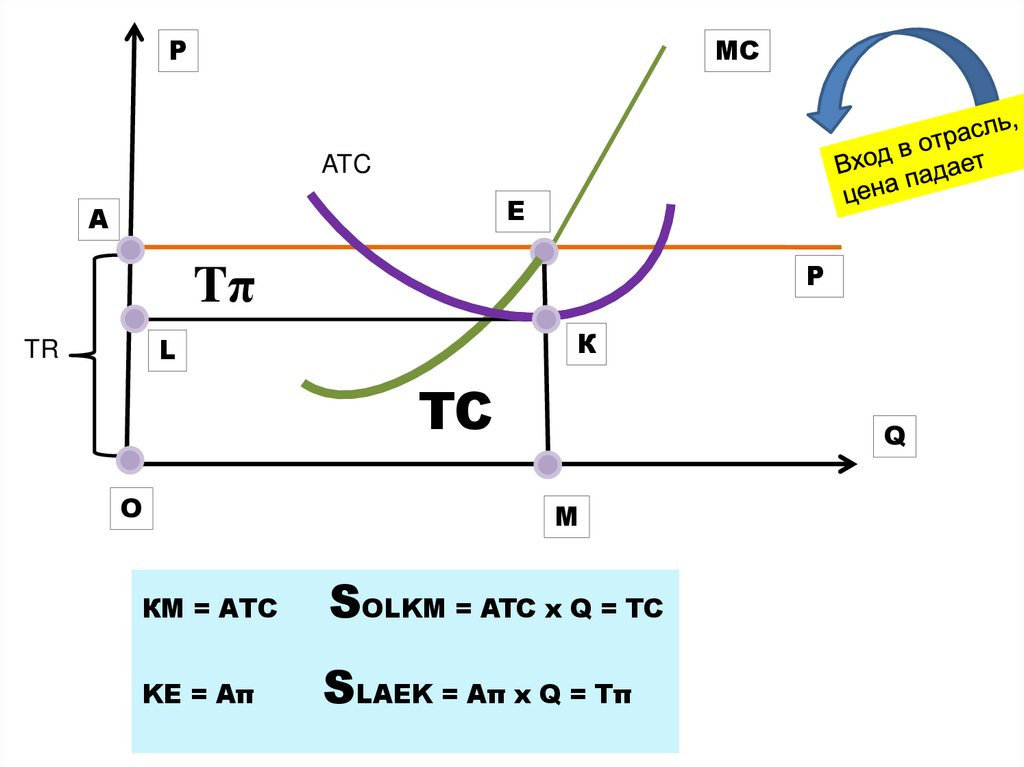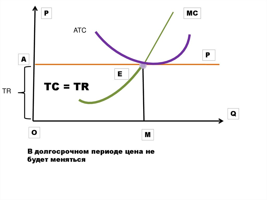 точка, где МС = Р. Однако в долгосрочном периоде цена начнет
