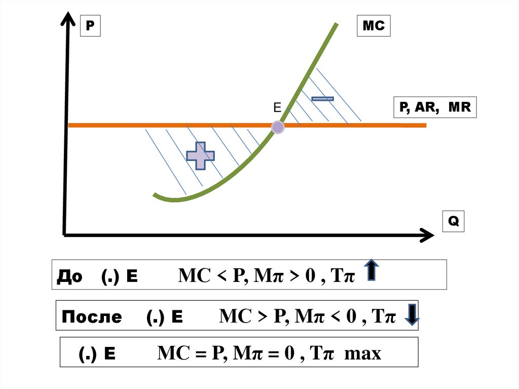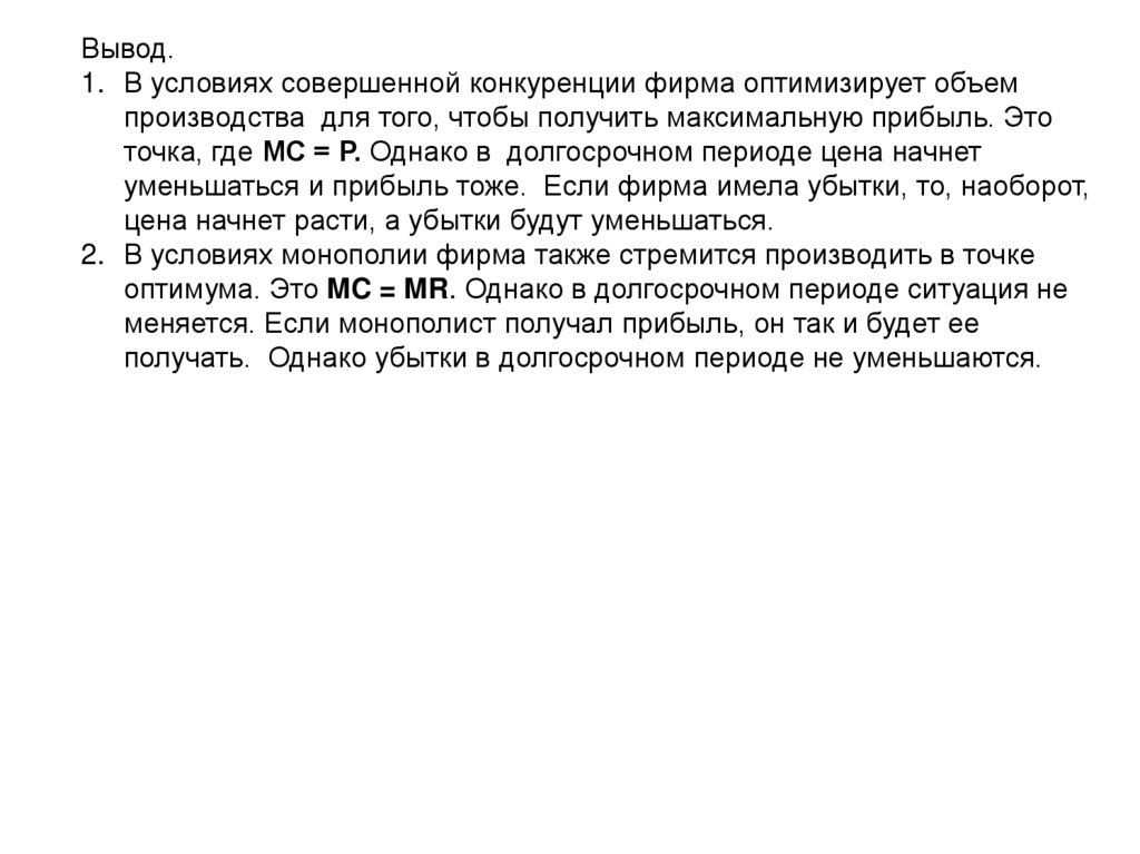 Вывод.1. В условиях совершенной конкуренции фирма оптимизирует объем