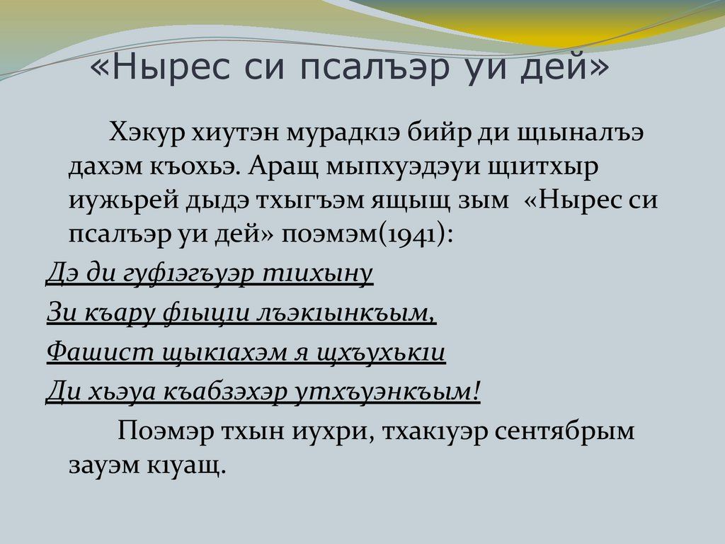 Диф1 дгъэлъап1эу псэун лъэпкъ Тхьэм дищ1.Щ1ымахуэ уэсу ди