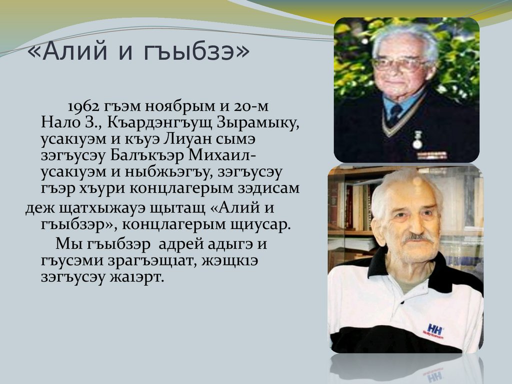 «Алий и гъыбзэ»1962 гъэм ноябрым и 20-м