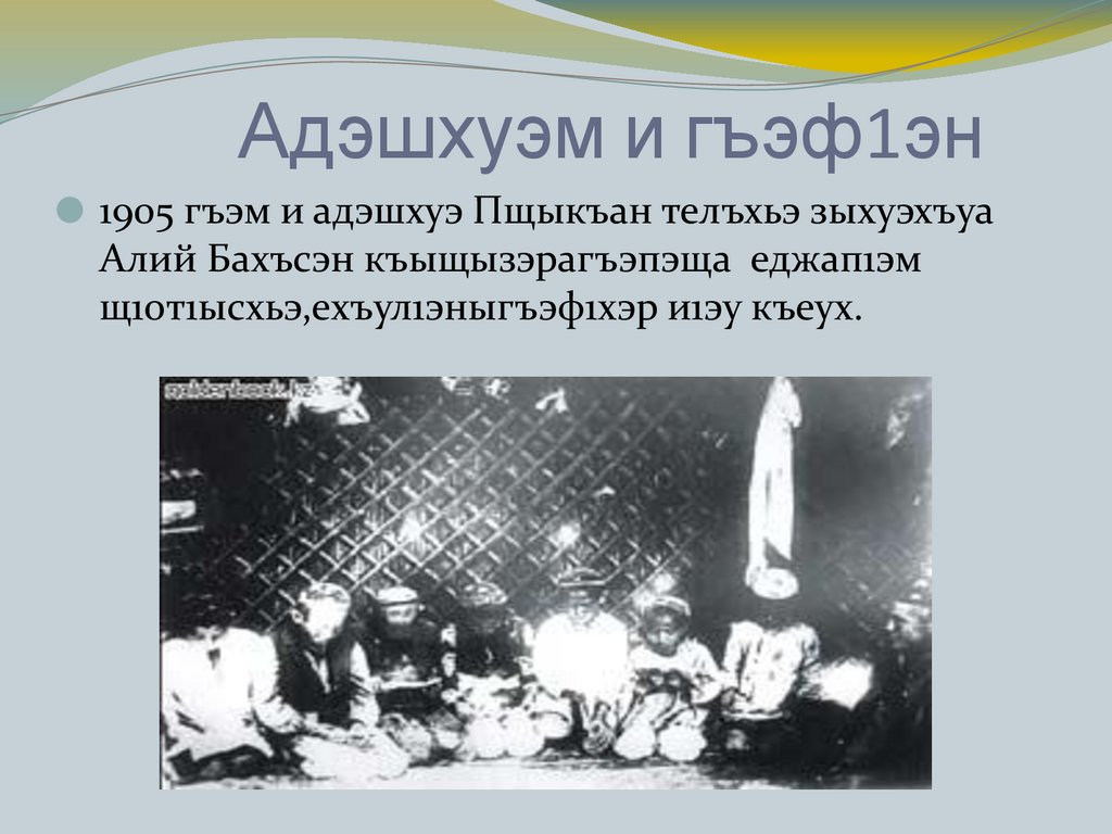 Адэшхуэм и гъэф1эн⚫ 1905 гъэм и адэшхуэ Пщыкъан телъхьэ зыхуэхъуа