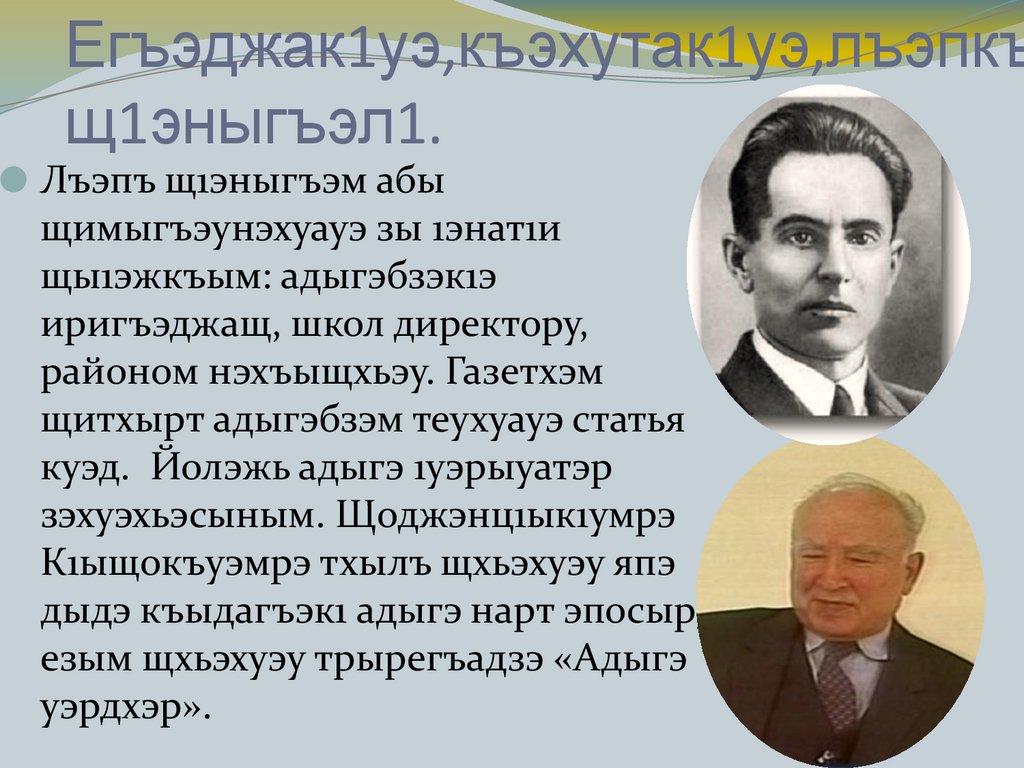 Егъэджак1уэ,къэхутак1уэ,лъэпкъщ1эныгъэл1.