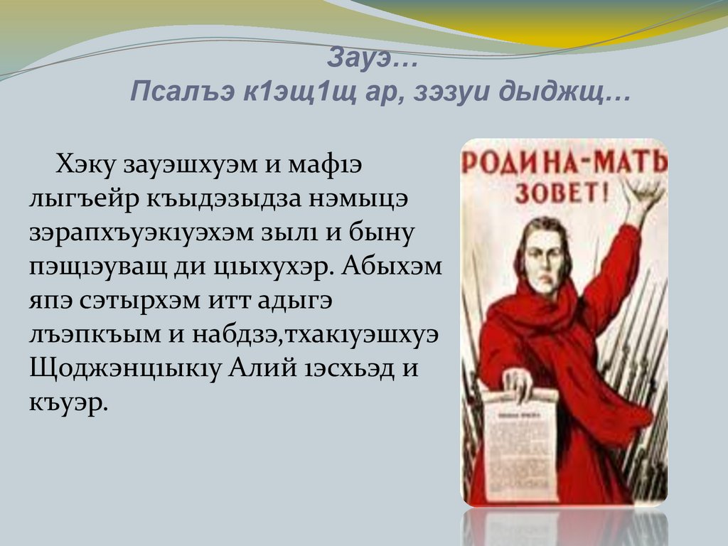 Лъэпкъ усыгъэм и налкъут⚫ Щоджэнц1ык1у Алий етх