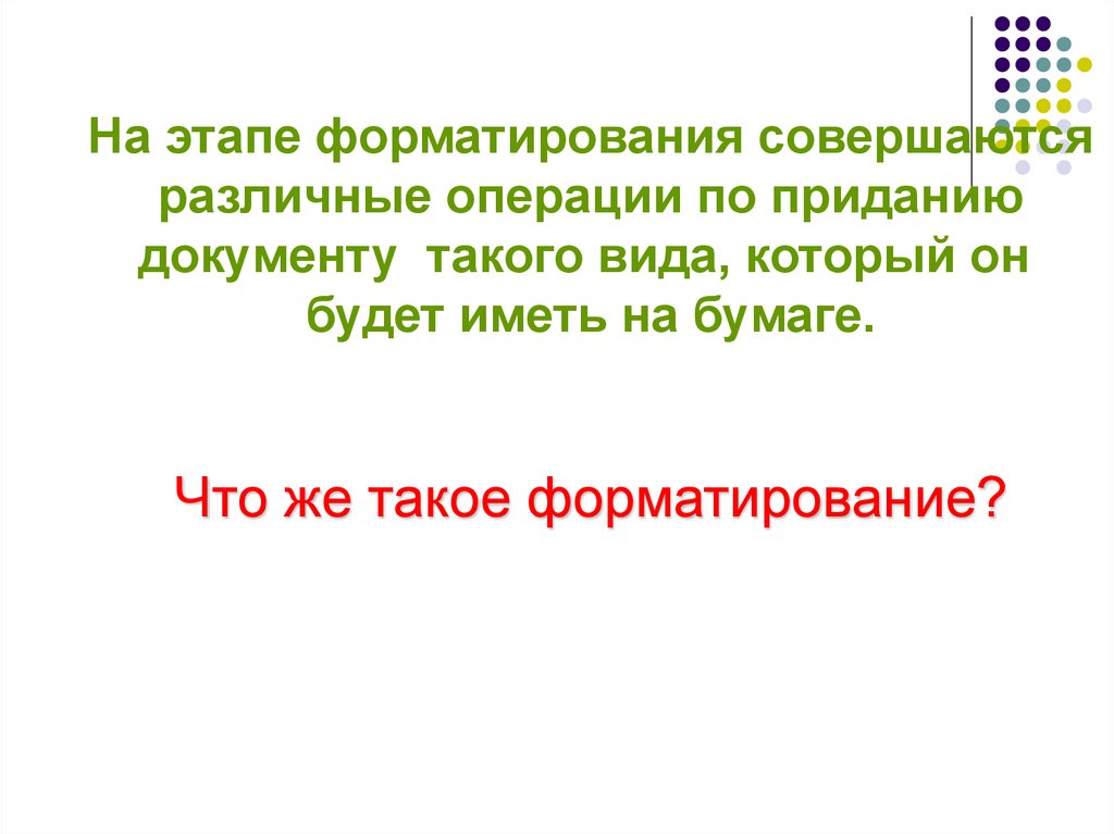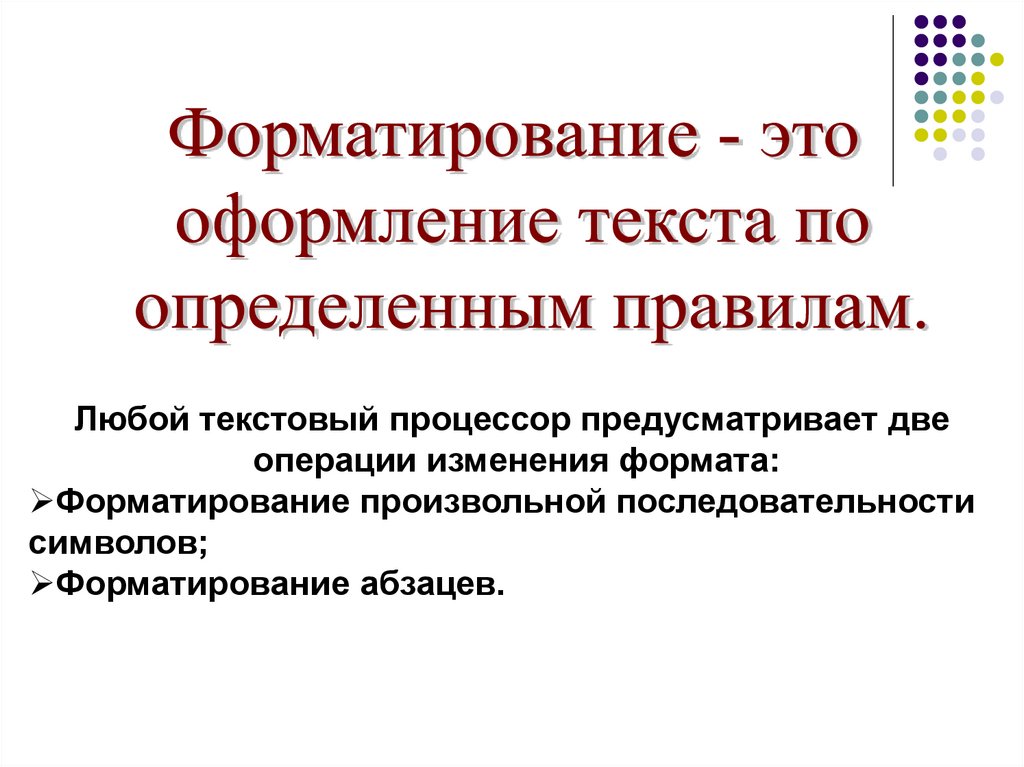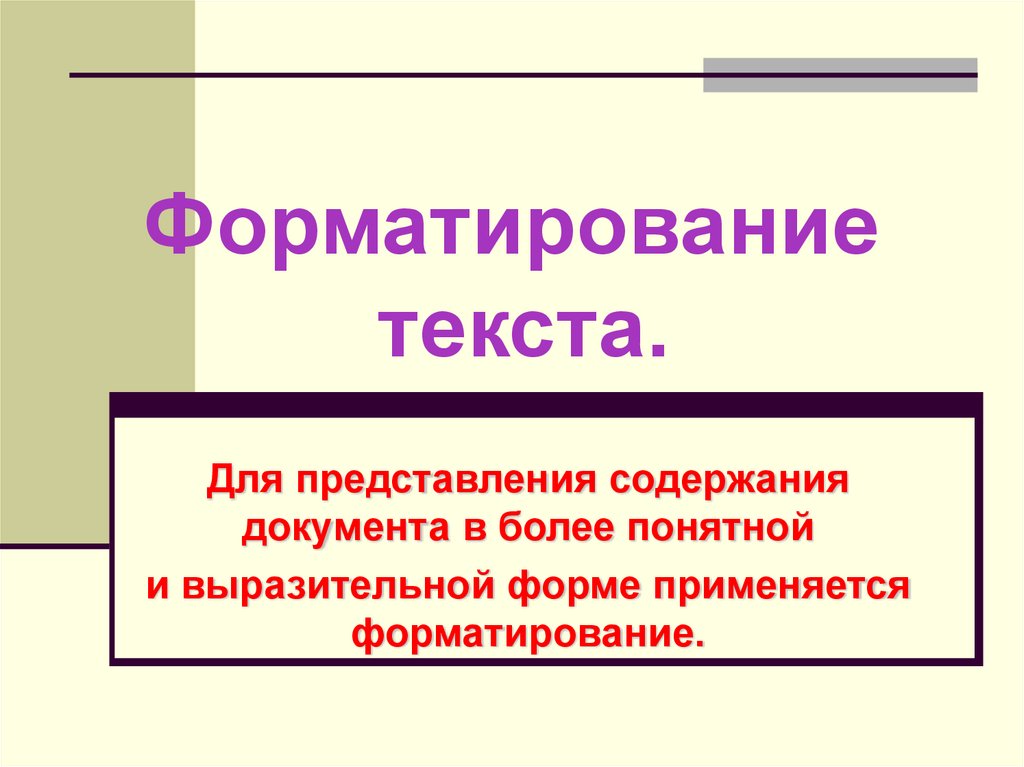 Форматирование абзацев позволяетподготовить правильно и красиво оформленный