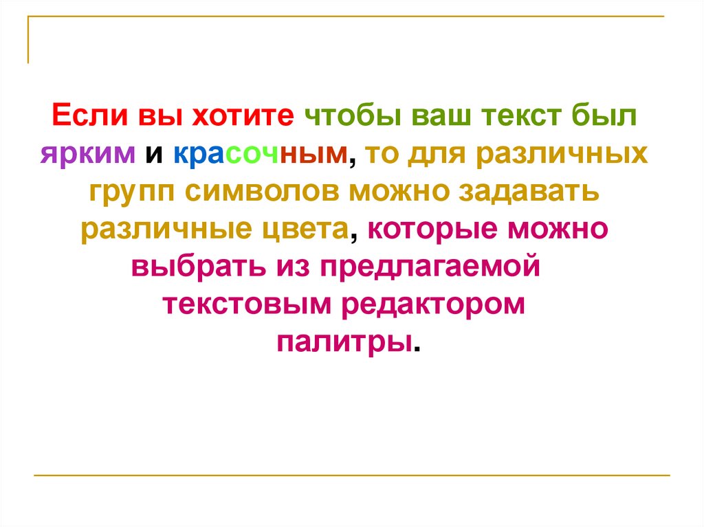 Если вы хотите чтобы ваш текст былярким и красочным, то для различных