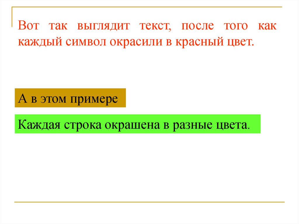 Вот так выглядит текст, после того каккаждый символ окрасили в красный цвет.
