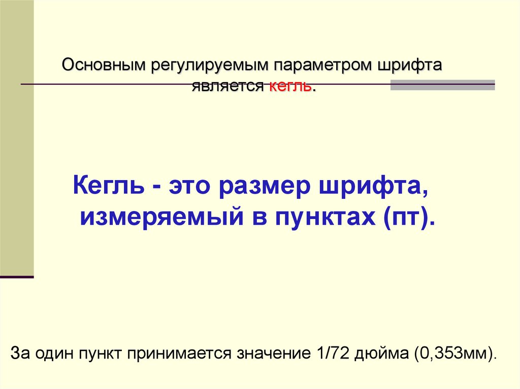 За один пункт принимается значение 1/72 дюйма (0,353мм).