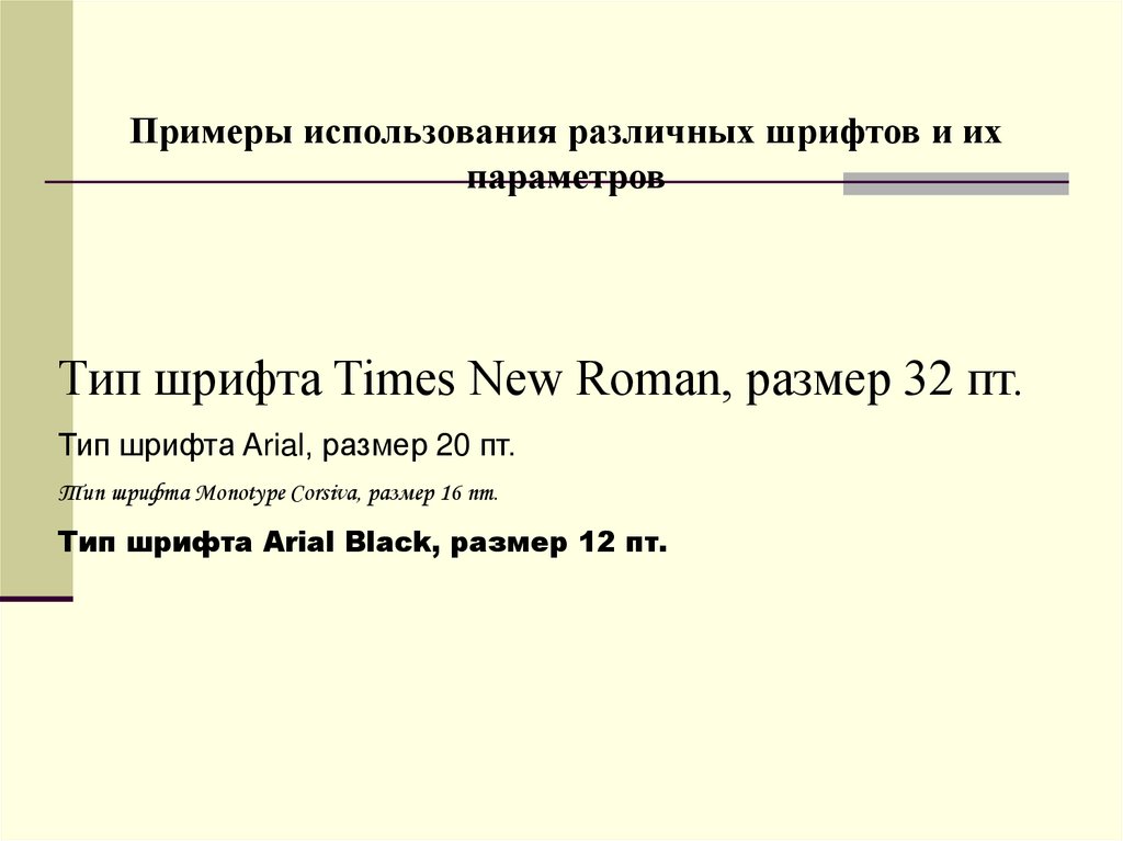 Тип шрифта Monotype Corsiva, размер 16 пт.