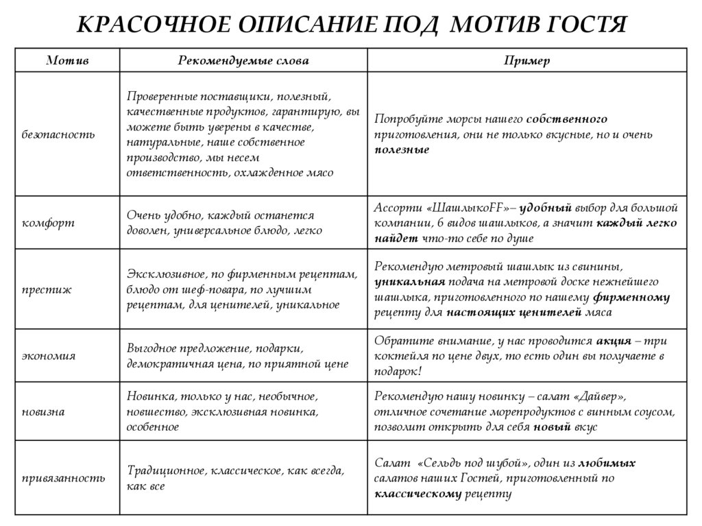 целью заинтересовать Гостя или завязать разговор «Обратите внимание, в нашем меню вы