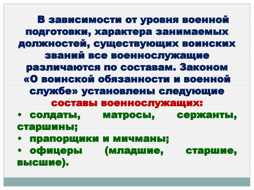 В зависимости от уровня военнойподготовки, характера занимаемых