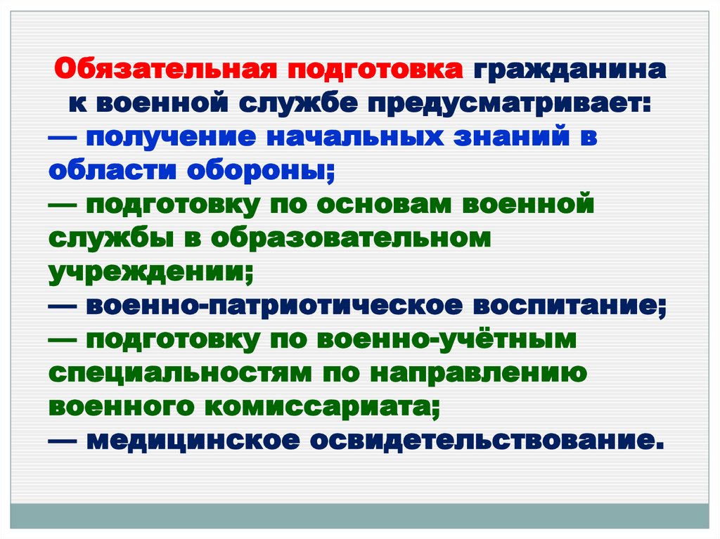Обязательная подготовка гражданинак военной службе предусматривает: