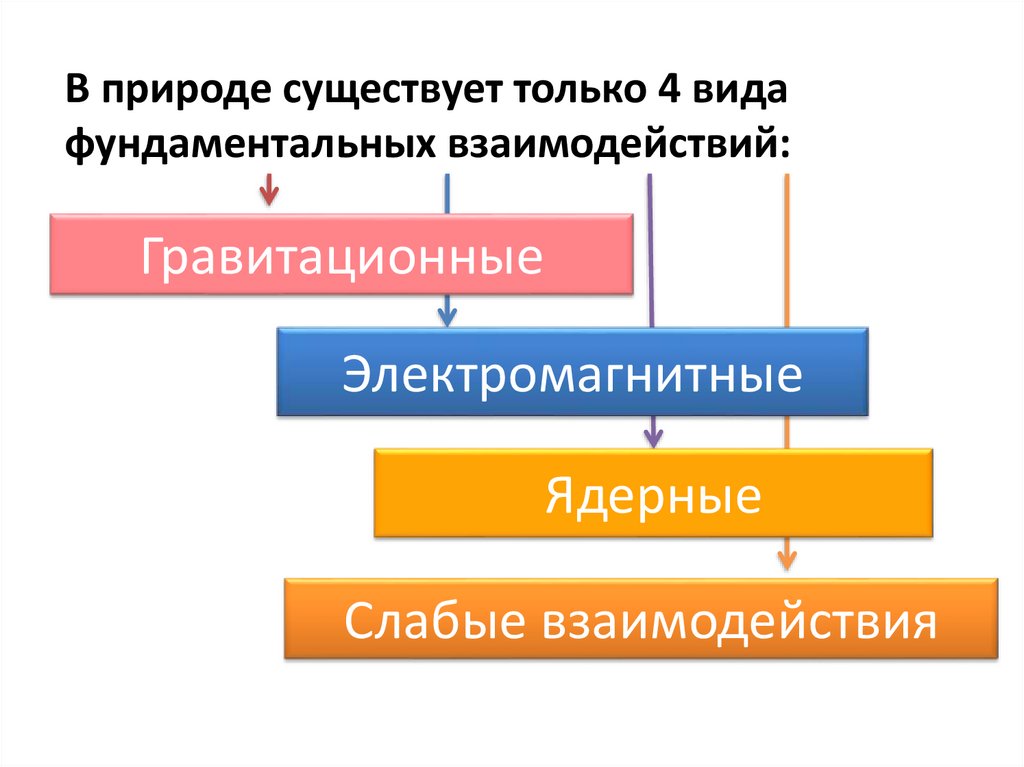 В природе существует только 4 видафундаментальных взаимодействий: