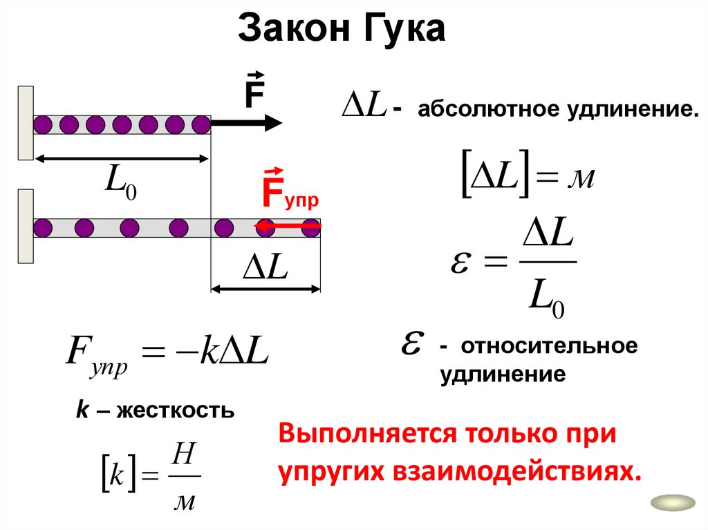 Закон ГукаL - абсолютное удлинение.