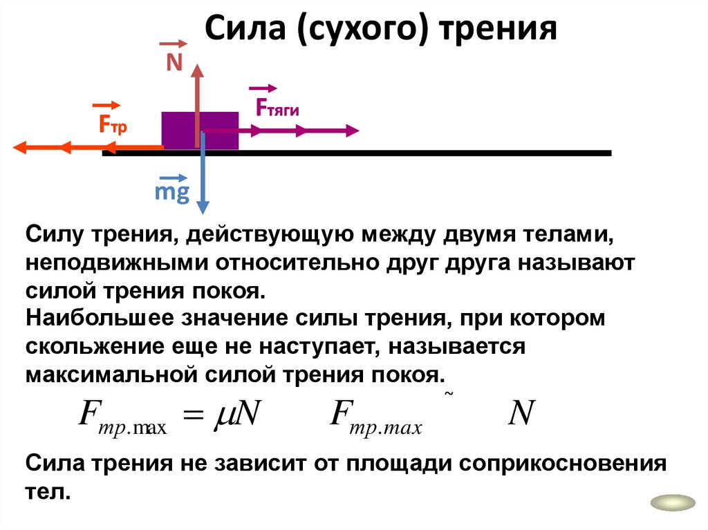 Сила (сухого) тренияN