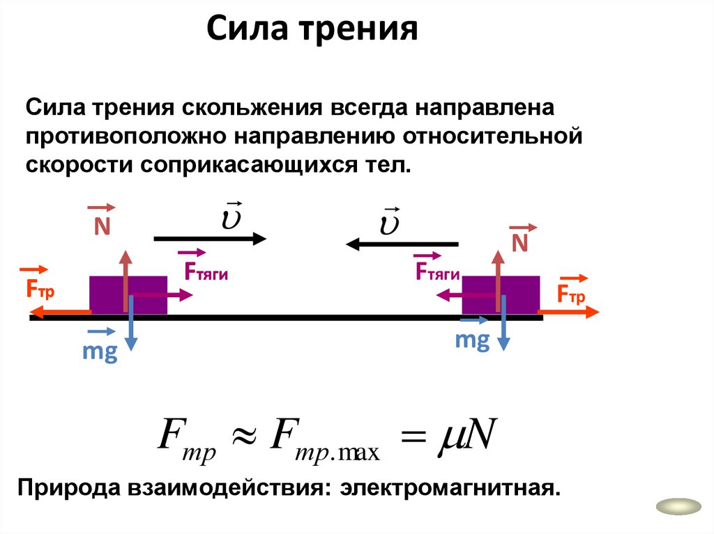 Сила тренияСила трения скольжения всегда направлена