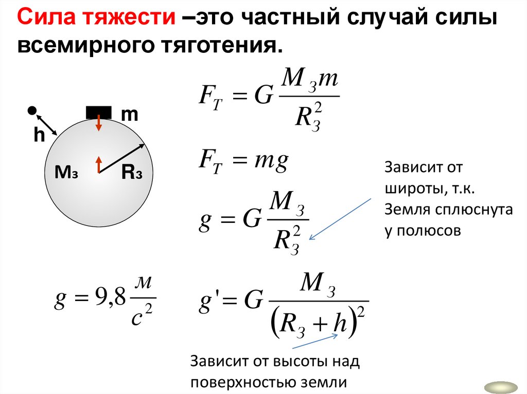 Сила тяжести –это частный случай силывсемирного тяготения.