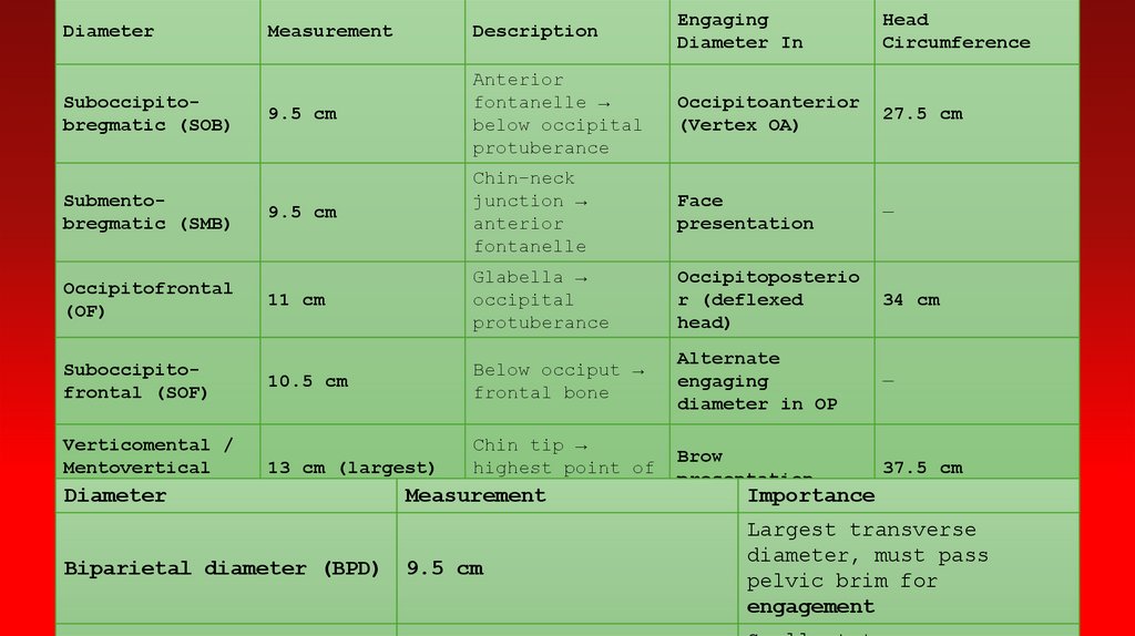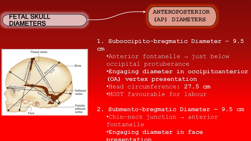 1. Suboccipito-bregmatic Diameter – 9.5