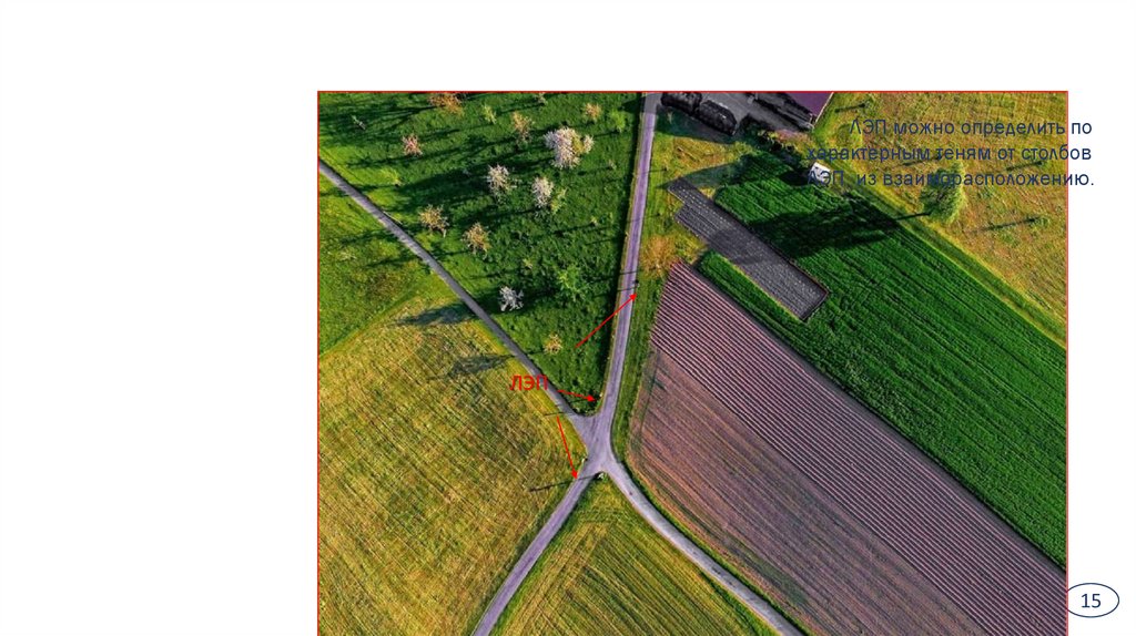 аэроснимке, но в разных его частях, проекции одинаковых высоких объектов могут иметь различные дешифровочные