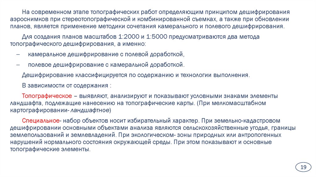 На современном этапе топографических работ определяющим принципом дешифрированияаэроснимков при стереотопографической и комбинированной съемках, а также при обновлении