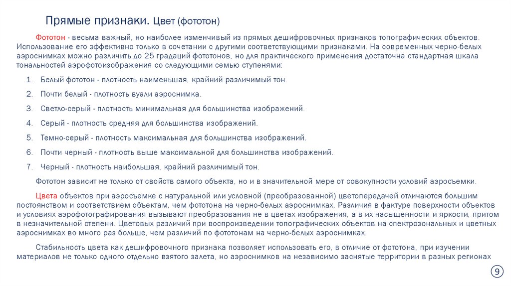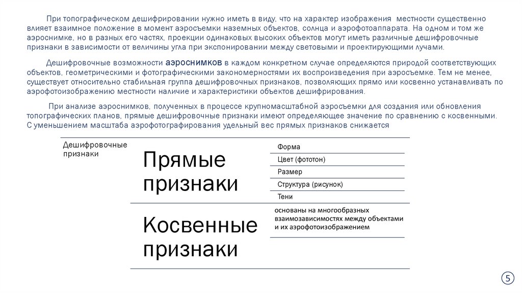 существует относительно стабильная группа дешифровочных признаков, позволяющих прямо или косвенно устанавливать по