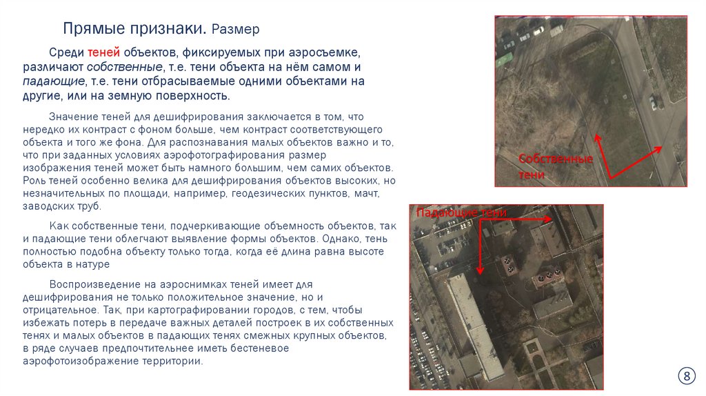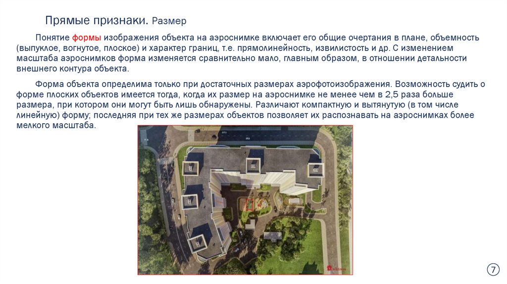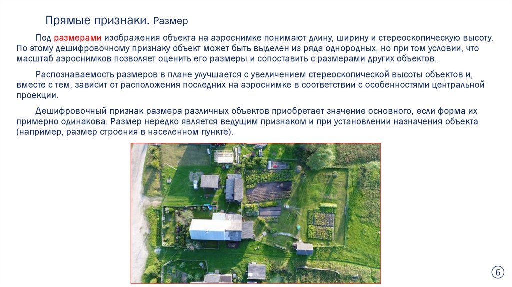 Прямые признаки. РазмерПод размерами изображения объекта на аэроснимке понимают длину, ширину и стереоскопическую высоту.