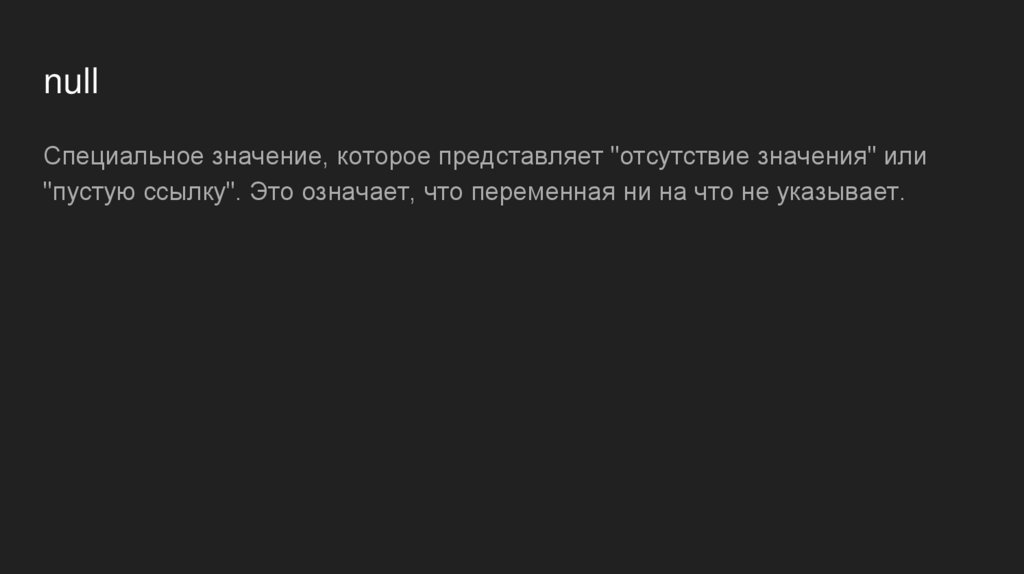 nullСпециальное значение, которое представляет "отсутствие значения" или