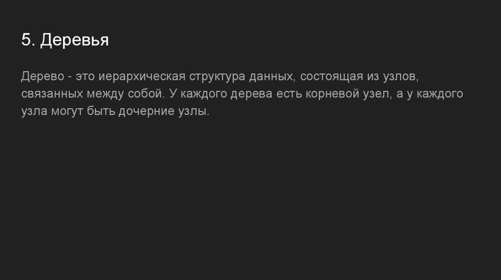 5. ДеревьяДерево - это иерархическая структура данных, состоящая из узлов,