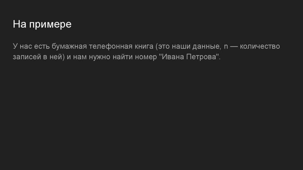 На примереУ нас есть бумажная телефонная книга (это наши данные, n — количество
