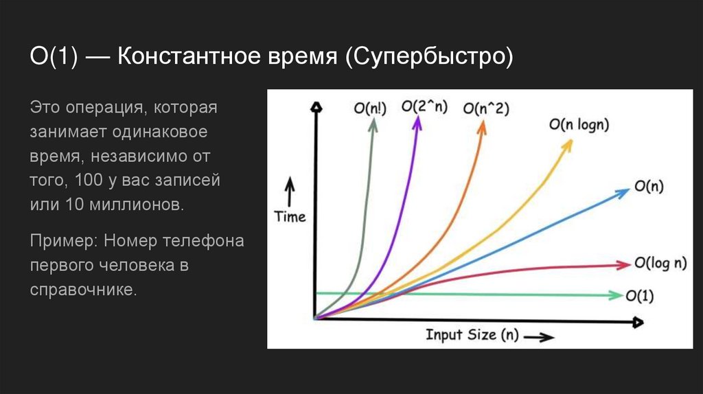 O(1) — Константное время (Супербыстро)Это операция, которая