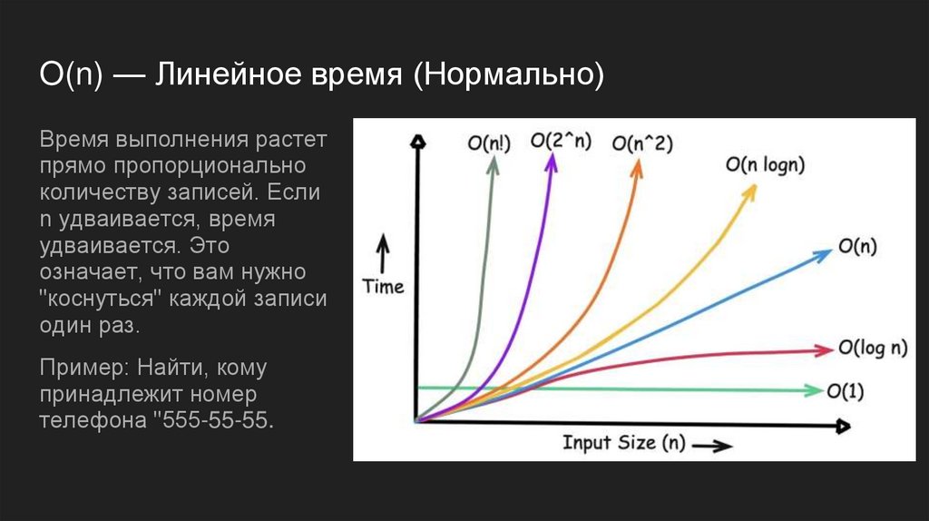 O(n) — Линейное время (Нормально)Время выполнения растет