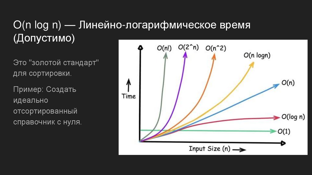 O(n log n) — Линейно-логарифмическое время(Допустимо)