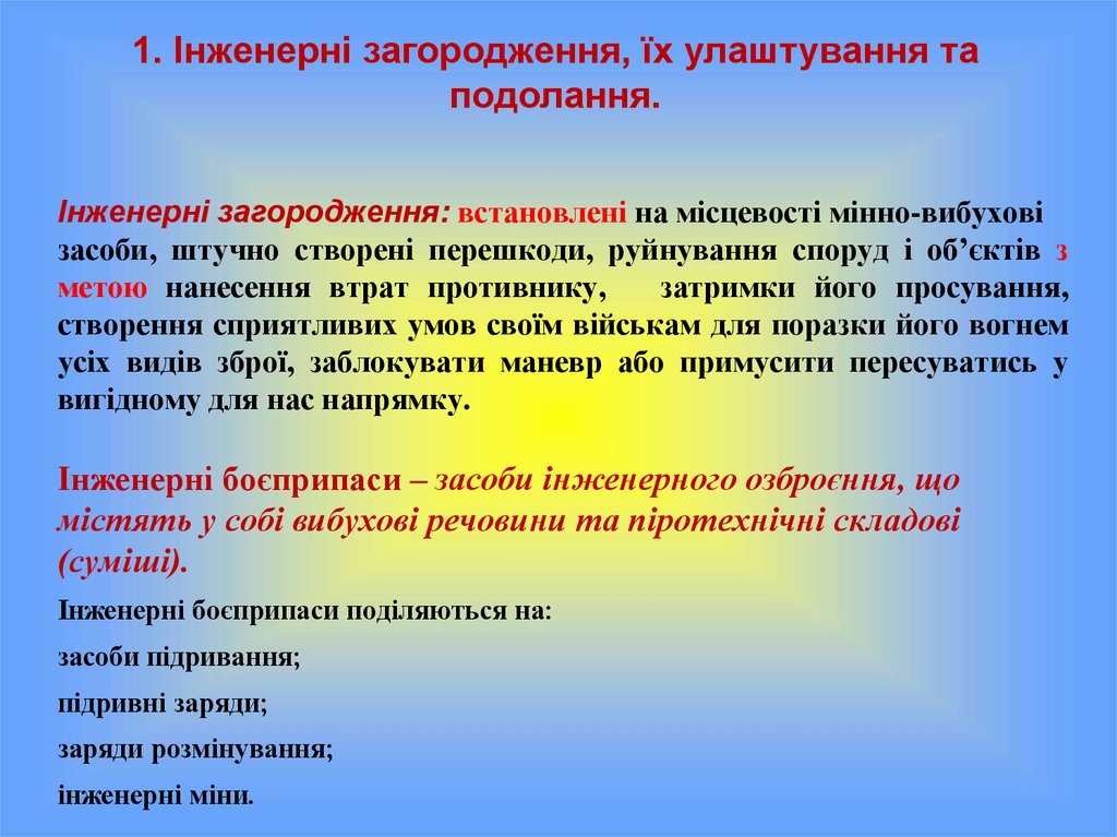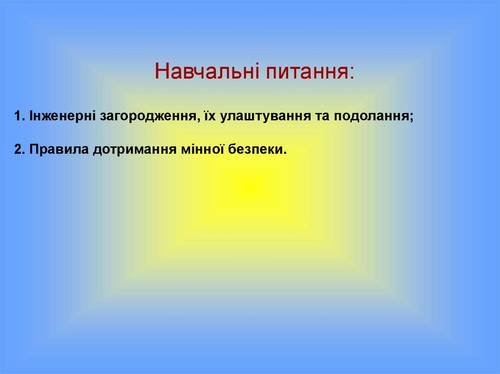 Навчальні питання:1. Інженерні загородження, їх улаштування та подолання;
