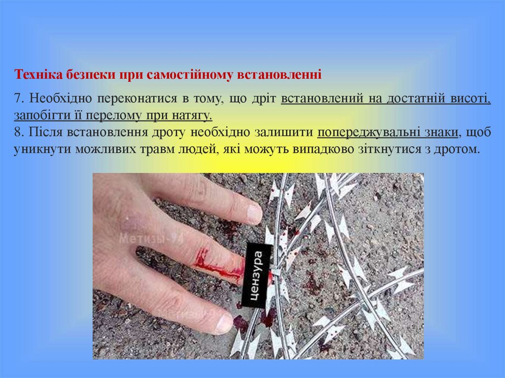 – позначати на місцевості виявлені міни та вибухонебезпечні предмети будьякими зрозумілими стороннім особам засобами;