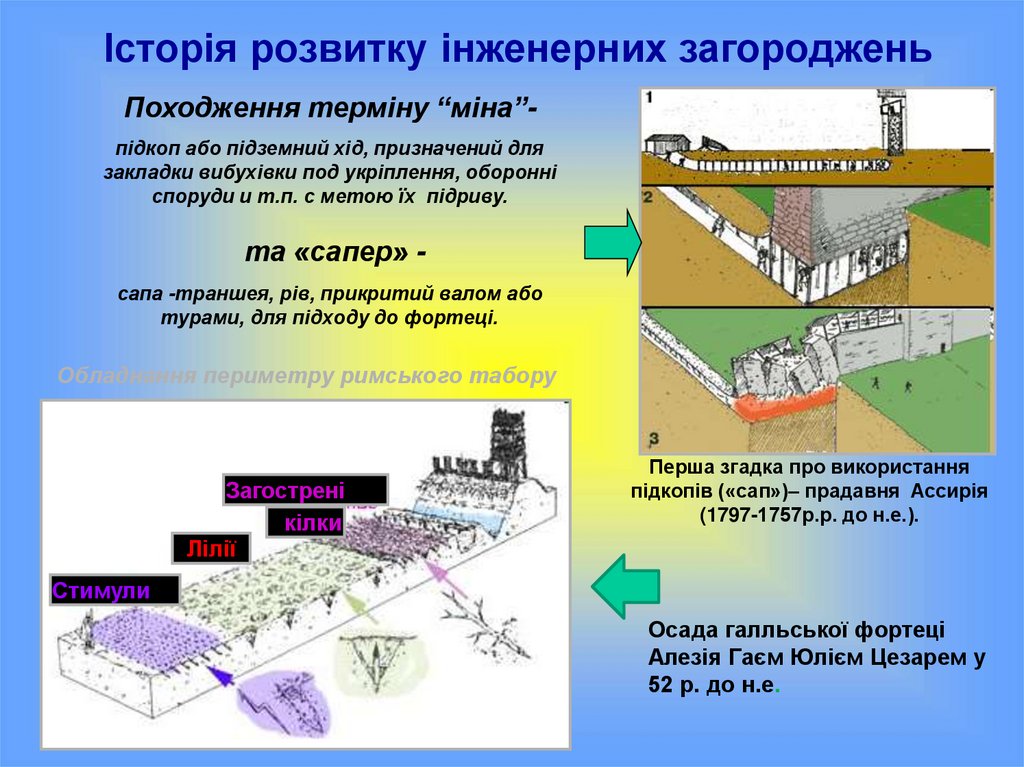 Історія розвитку інженерних загородженьПоходження терміну “міна”підкоп або підземний хід, призначений для